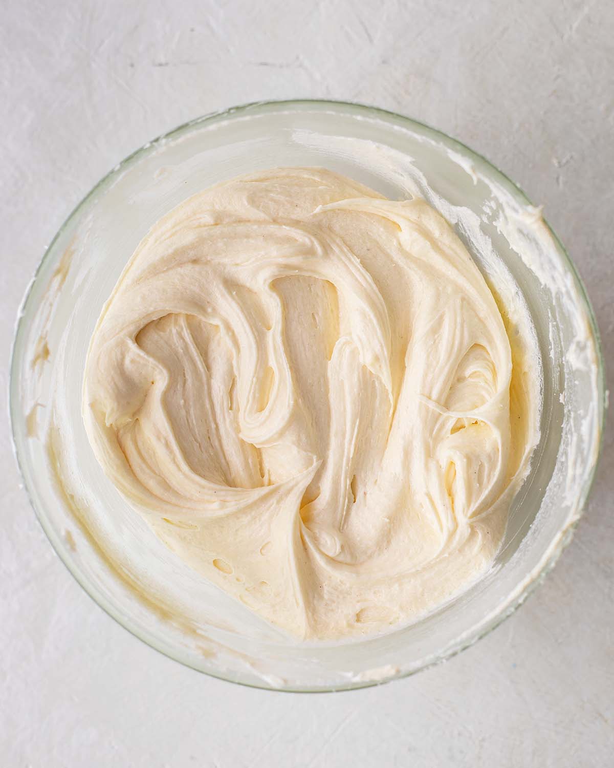 - Add all ingredients to a mixing bowl and cream the ingredients until smooth.